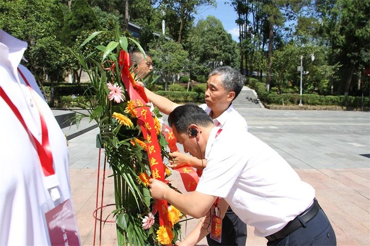 校长段振云、纪委书记沈犁在红军山烈士陵园敬献花篮