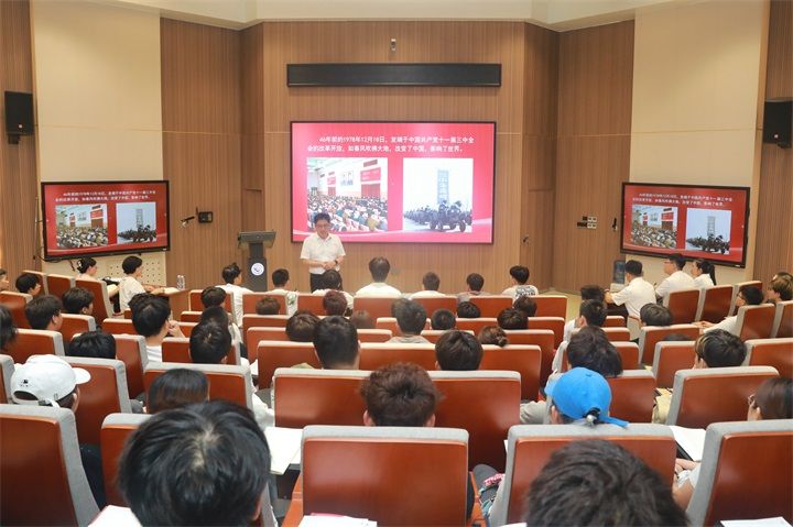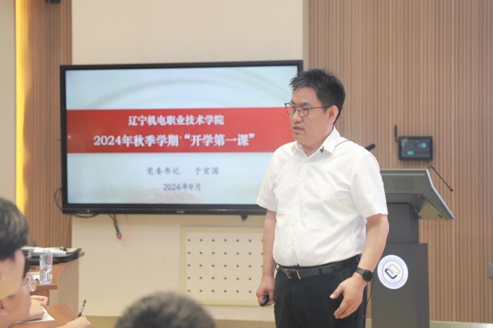9月5日上午,学校党委书记于宏国在报告厅以“深入学习贯彻党的二十届三中全会精神、以青春之力书写中国式现代化新篇章”为题讲授“开学第一课”,引领广大师生增强践行“两个维护”的高度自觉、坚定爱国奋斗挺膺担当,以实际行动迎接中华人民共和国成立75周年。