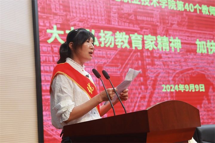 于宏国代表学校党委向全校教师提出三点希望。一是时时做到“以生为本”。教师在学生心目中具有“吐辞为经,举足为法”的特殊地位,我们应以言传身教来感召学生、赢得学生,自觉尊重和信任学生,最终达到潜心育人的目的。二是处处做到“以德为先”。作为高职院校老师,我们应有政治之德,具有家国情怀,更要有高于社会大众的道德水准和良好品德,教育引导学生既遵守个人品德,又养成热爱祖国和人民的大德,成为德才兼备的人才。三是事事做到“以能为要”。教师的主责主业是教书育人,我们要争做业务精湛、学识渊博的“学问之师”,争做勤勉笃行、敢作善成的“实干之师”,以渊博的专业知识、深厚的理论功底、过硬的教学能力赢得学生的尊重,让每一个学生都有人生出彩的机会。