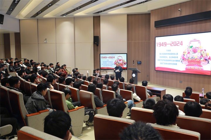 段振云全面梳理了新中国成立75周年来取得的伟大成就,从综合国力和国际影响力实现历史性跨越、经济结构发生历史性变革、对外开放成就举世瞩目、创新型国家建设成果丰硕、人民群众获得感幸福感安全感大幅提升、生态文明建设发生历史性转折性全局性变化等六个方面列举了我国经济社会发展取得的巨大成就。他从必须坚持党的全面领导、必须坚持以人民为中心、必须坚持走中国特色社会主义道路、必须坚持深化改革开放、必须坚持发展是党执政兴国的第一要务等五个方面立体分析了新中国成立75周年来取得伟大成就的重大启示。段振云希望同学们要勇于担当责任、增强自身本领,以苦干实干的精神放飞青春梦想,以勇当实干家的壮志凌云更好地为国争光、为民造福,真正用勤奋跨越天下难事,用实干创造人生精彩。