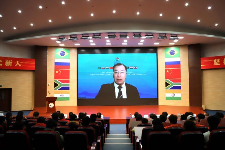 金砖国家工商理事会技能发展、应用技术与创新中方工作组组长,一带一路暨金砖国家技能发展国际联盟理事长刘振英作视频致辞。他表示,“一带一路”倡议为各国间的合作与发展带来了前所未有的机遇,金砖国家的合作机制也在不断深化拓展。他感谢各位领导、各位专家以及社会各界同仁对金砖国家职业技能大赛的关注和支持,预祝各参赛队取得理想成绩,并祝赛项取得圆满成功。