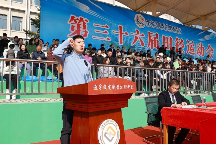 校长段振云致开幕词。他代表学校,向莅临本次运动会的各位企业家朋友表示欢迎,向参与和筹备此次运动会的全体工作人员及全体运动员、裁判员表示衷心感谢!段振云表示,让我们以拼搏为笔,绘就奋斗底色;以文明为尺,彰显青春风度;以运动为桥,传递健康理念;以昂扬的斗志、团结的姿态,共同见证力与美的绽放,共同书写辽宁机电的激情篇章!