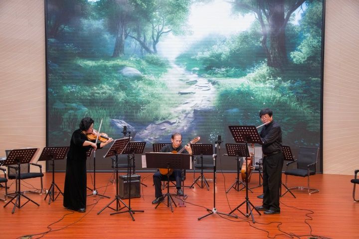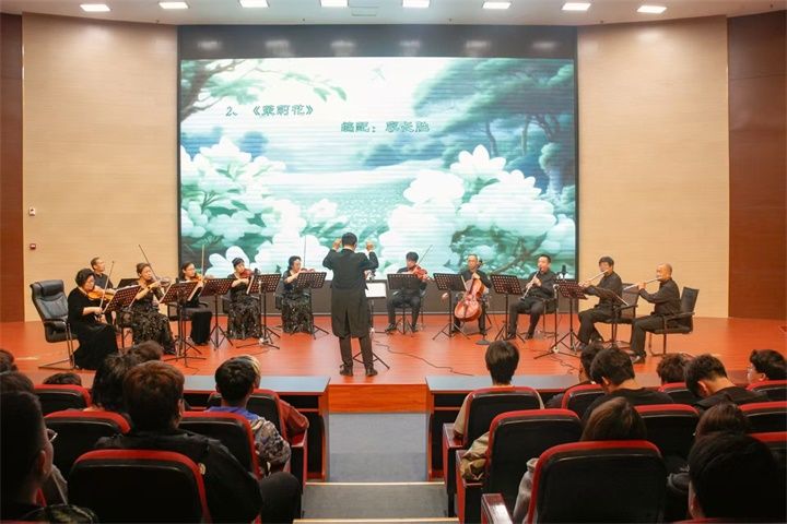 音乐会在全场热烈的掌声中拉开帷幕。音乐会精心挑选了 16 首兼具红色主题与民族风格的作品,演出团队以专业精湛的艺术演绎,搭配多元经典的曲目选段,为全校师生带来了一场沉浸式的视听盛宴。