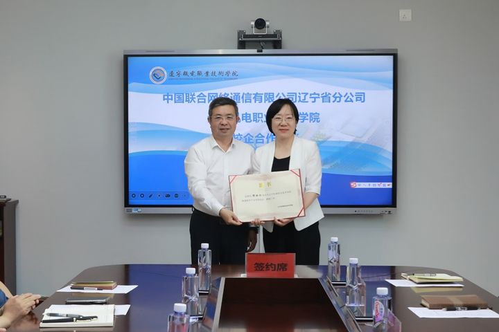 6 月 10 日,我校与中国联合网络通信有限公司辽宁省分公司在行政中心会议室举行战略合作框架协议签约仪式,正式启动联通数字产业学院共建项目。辽宁联通公司副总经理许宏印、市政企 BG 常务副总裁韩广龙、丹东市分公司总经理黄会然一行代表企业出席会议。学校党委书记曲壮凯、副校长王岩、副校长王俊出席仪式。王俊主持签约仪式。
