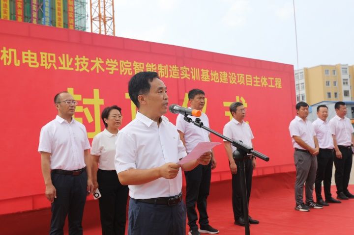 8月15日,体育app官网登录仪表园校区举行“智能制造实训基地”工程项目封顶仪式。学校领导班子全体成员、合作单位代表及项目建设者出席仪式。副校长王俊主持。