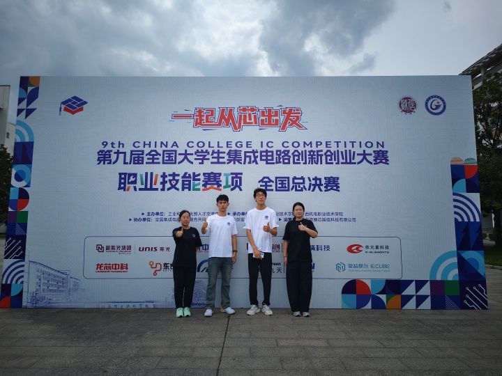 近日,在第九届集创赛“职业技能赛项”全国总决赛在江苏信息职业技术学院落幕。由我校学生荣戈、贾喜民、郑俊卿组成的“集智芯光”团队,在教师李闯、刘晓楠的指导下荣获三等奖。