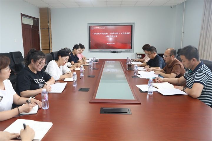 9月12日下午,学校党校召开专题会议,集中收听收看中央党校(国家行政学院)校长(院长)陈希关于贯彻落实新修订的《中国共产党党校(行政学院)工作条例》的讲话和分管日常工作的副校长(副院长)谢春涛专题辅导视频。