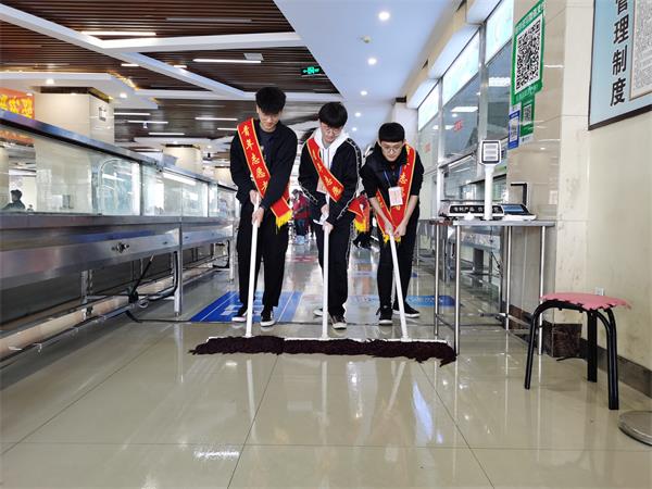 本次活动得到了广大青年志愿者的积极响应,志愿者们根据工作需要分为若干个小组,有的在打饭口引导同学有序就餐,有的在餐具回收处协助工作人员清理餐盘,有的在帮忙清理餐桌、地面等等。活动现场,志愿者们不辞辛苦地忙碌在自己的雷锋岗位上,为共同创建文明校园,一点一滴贡献着自己的力量。用餐时间结束后,志愿者们帮助工作人员一同清扫食堂垃圾、摆放餐盘、桌椅。随后,饮食服务中心修晓峰主任带领志愿者们参观了食堂工作间,并向志愿者们征求对食堂的意见和建议。此外,大学生青年志愿者协会会长李泽宇同学宣读了“光盘行动”倡议书,倡导大家学习雷锋勤俭节约、艰苦奋斗的精神,鼓励广大学生到学校食堂健康饮食。