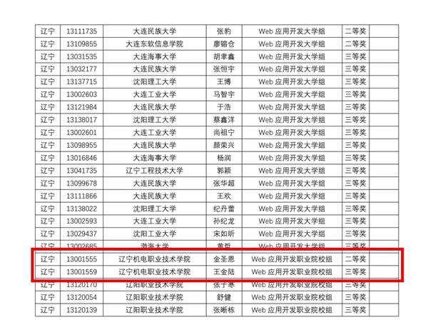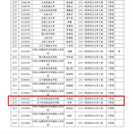 近日,由工业和信息化部人才交流中心主办,国信蓝桥教育科技(北京)股份有限公司承办的第十三届蓝桥杯全国软件和信息技术专业人才大赛省赛顺利举行。来自北京大学、清华大学、复旦大学、上海交通大学等1600多所高校的13余万名选手通过线下、线上的方式参加了比赛。我院信息工程系学生金圣恩、王金陆在教师杨灵、陈国才的指导下取得了Web应用开发赛项辽宁省高职院校第一、二名的喜人成绩;学生尹昱超、任雨在教师杨灵、翟鹏翔的指导下荣获C/C++赛项辽宁省二等奖。