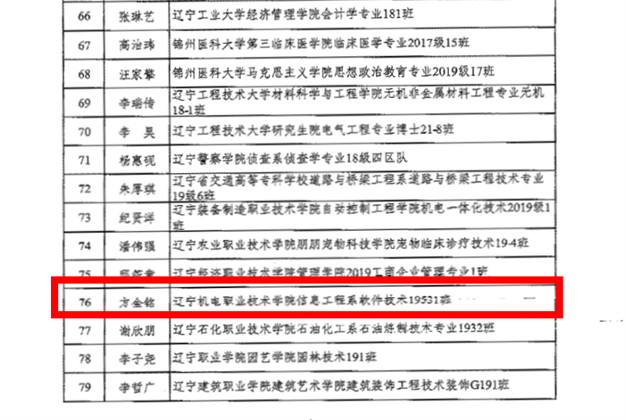 近日,省委教育工委面向全省普通高校评选表彰100名优秀大学生党员,我院信息工程系软件技术专业19级学生方金铭荣获“辽宁省优秀大学生党员”称号。