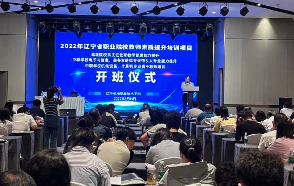 按照《教育部 财政部关于实施职业院校教师素质提高计划 (2021-2025 年)的通知》有关要求,贯彻落实好《辽宁省教育厅关于2022 年辽宁省职业院校教师素质提升培训计划的通知》,8月15日,由我院承办的2022年辽宁省职业院校教师素质提高计划项目“高职院校系主任教学管理能力提升培训”“中职学校电子与信息专业带头人专业能力提升培训”“中职学校装备制造类专业带头人专业能力提升培训”“中职学校机电设备专业骨干教师培训”“中职学校计算机专业骨干教师培训”顺利开班。学院副院长赵景晖出席开班仪式并发表讲话,会议由培训处处长王立臣主持。