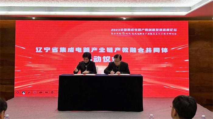 会上,辽宁省委教育工委专职委员孔峰、中国半导体行业协会集成电路分会秦舒秘书长共同为辽宁集成电路产业链产教融合共同体进行揭牌。体育app官网登录副校长赵景晖代表辽宁集成电路产业链产教融合共同体与中国半导体行业协会集成电路分会人才储备基地签署战略合作协议。