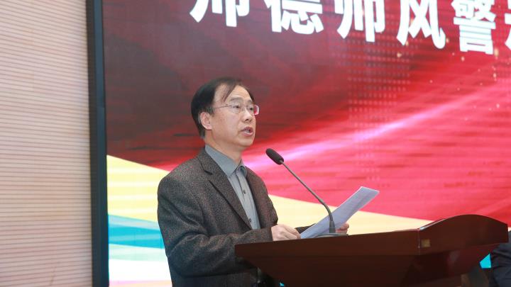 于宏国就进一步做好学校师德师风建设提出三点意见。他指出,一要提高政治站位,转变思想认识。全体教师要内强素质、外树形象,把能力提升与作风建设相结合,做到课堂讲授有纪律,学术研究有原则,公开言论有底线,营造风清气正的校园政治生态环境。二要健全体制机制,强化制度保障。要堵牢制度建设漏洞;要健全事前监管机制,提前摸排研判,处理潜在“苗头”,做到“防患于未然”,筑牢师德师风建设“防火墙”。三要以案为鉴,树立底线意识。各总支、各支部、各部门党政负责人作为师德建设第一责任人,严格落实师德建设主体责任,认真做好专项整治有关工作。要以本次师德警示教育活动为契机,发挥师德失范问题典型案例警示、触动作用,唤起广大教师规则意识、底线意识,引导教职员工时刻自重、自省、自警、自励,把教师职业责任时刻放在心上。