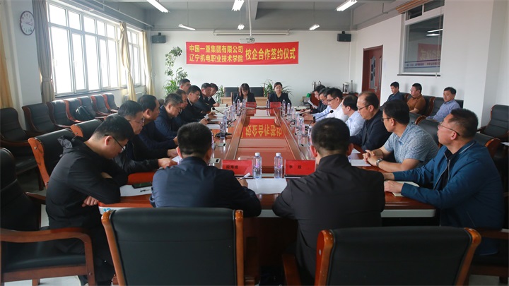 于宏国对中国一重集团祁文革一行的到来表示热烈欢迎,向多年来关心和支持学校发展的中国一重致以诚挚感谢。他表示,中国一重作为央企,是我国装备制造业的“国宝”,70多年来为国民经济建设提供大型机械产品,是名副其实的大国重器。习近平总书记曾先后两次到一重集团考察,集团始终秉承“发展壮大民族装备工业,维护国家国防安全、科技安全、产业安全和经济安全,代表国家参与全球竞争”的初心和使命,带动了我国重型机械制造水平的整体提升,支撑了国防与国民经济的发展,为振兴东北老工业地基做出了贡献。他指出,学校与中国一重签订战略合作协议,是校企双方深化产教融合、校企合作的重大举措,更是学校打造机械行业高职名校特色发展上的又一重大里程碑。学校将以此次签约为契机,与中国一重紧密合作,促进校企双方在共建人才培养体系、产教融合实训基地、特色产业学院等领域开展深度合作,形成校企命运共同体,为企业提供有力的技术技能人才支撑。
