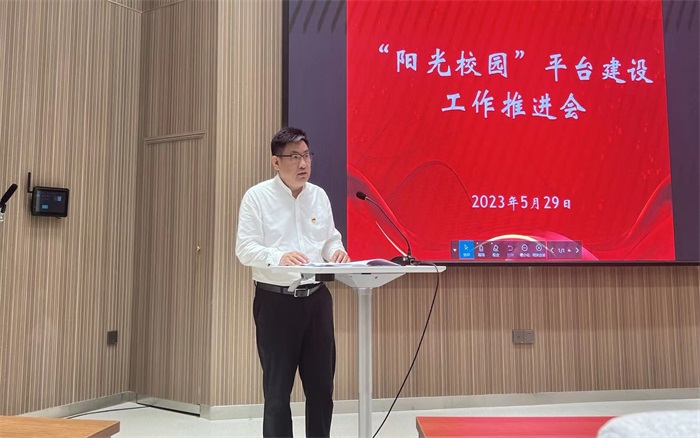 5月29日,学校召开“阳光校园”平台建设工作推进会,学校领导班子成员及各部门负责人参加会议,纪委书记沈犁主持会议,党委书记于宏国出席会议并讲话。