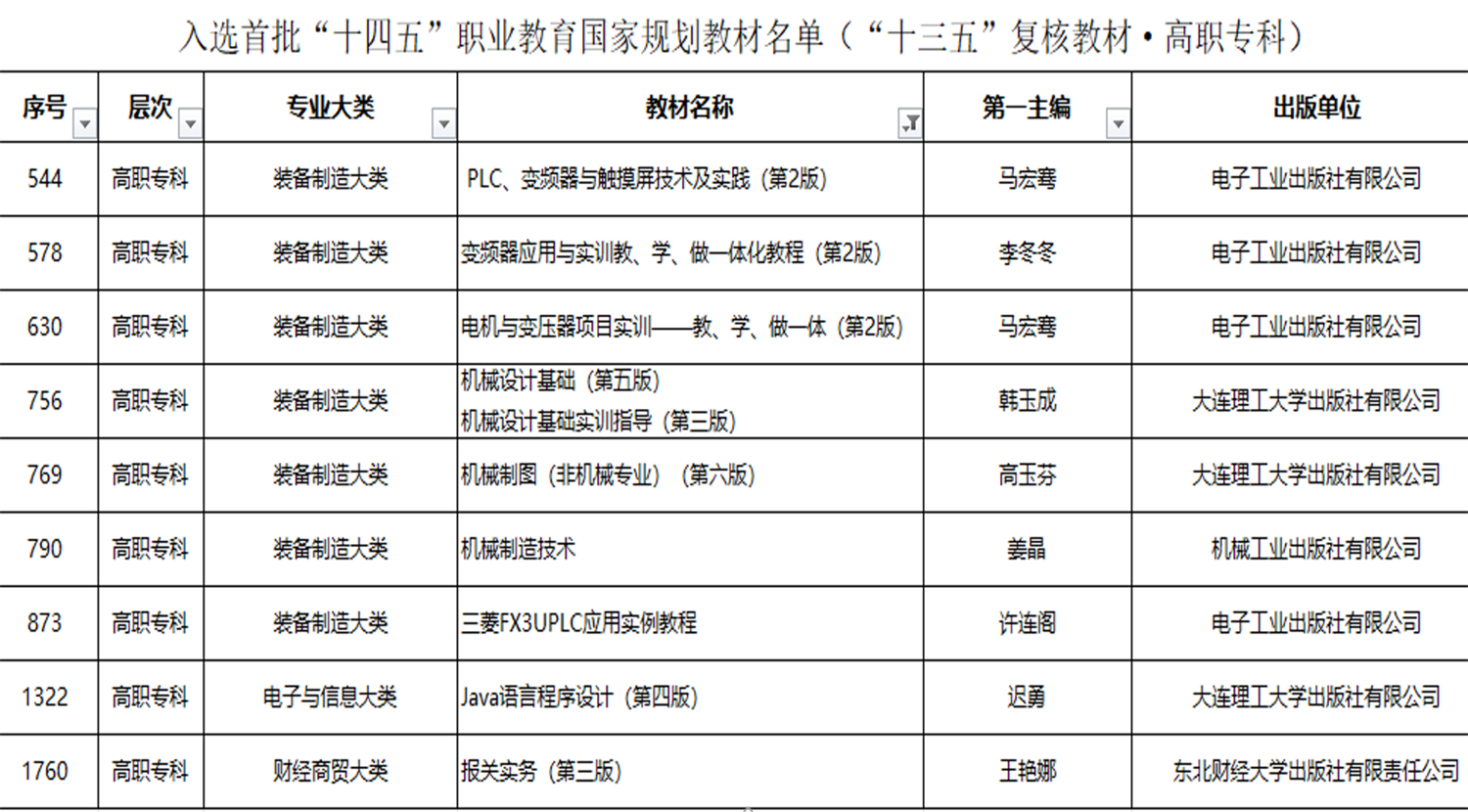 6月30日,教育部办公厅发布《关于公布首批“十四五”职业教育国家规划教材书目的通知》,我校13部教材成功入选。