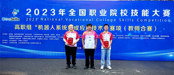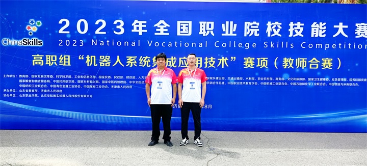 2023年全国职业院校技能大赛高职组“机器人系统集成应用技术”赛项学生赛和教师赛于8月18至24日在山东省济南市举办。我校自控系“机电一体化技术”专业学生任峻玮、徐建洪组成的参赛队在教师郭海林的指导下荣获学生赛三等奖;我校自控系教师郭海林、洪亮组成的参赛队荣获教师赛三等奖。
