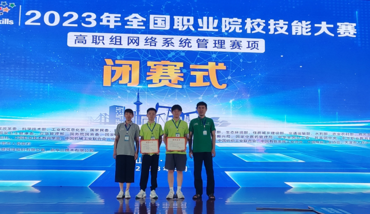近日,2023年全国职业院校技能大赛高职组“网络系统管理”赛项在山东东营职业学院落下帷幕,来自全国31个省、自治区、直辖市和新疆生产建设兵团的72支代表队参赛。我校信息工程系学生储佳蕤、赵宁在教师李建光、卢晓丽的指导下荣获团体三等奖。