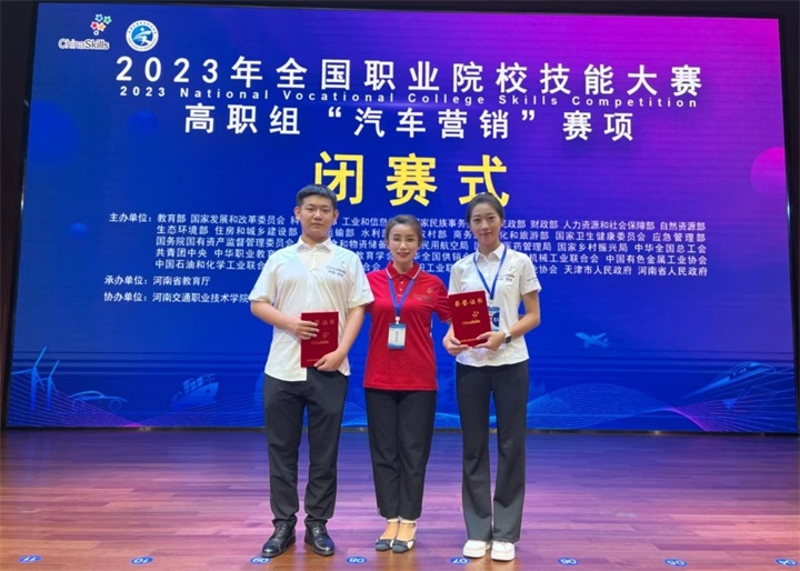 8月22至25日,全国职业院校技能大赛(高职组)“汽车营销”赛项在河南交通职业技术学院举行,吸引了来自全国68支参赛队伍的136名选手参赛。我校“汽车技术服务与营销专业”学生冯晓婷、姜博浩在教师曲奕凝、杨明的指导下荣获三等奖。