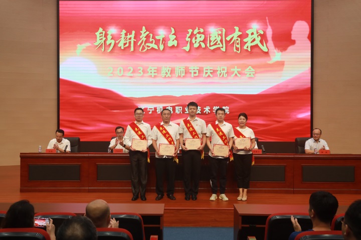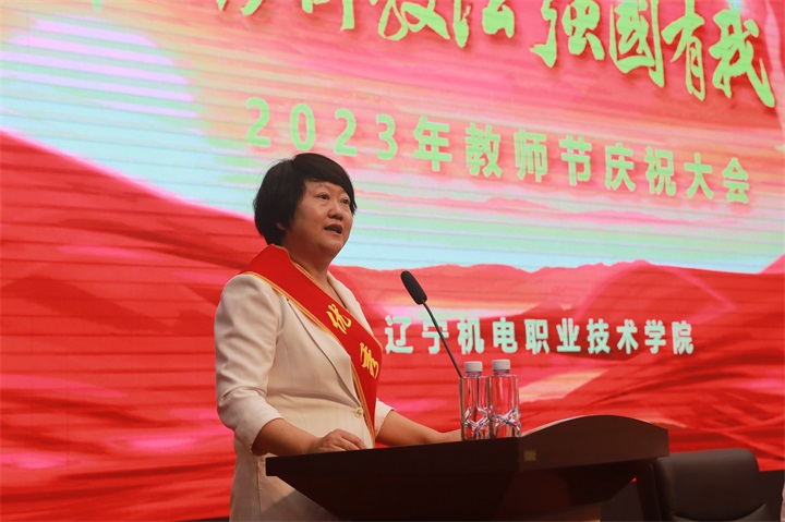 副院长宁秋平宣读2022-2023学年度校先进集体、先进个人;获得省级荣誉先进集体、先进个人;辽宁省教学名师与专业带头人表彰名单。同时,还宣读了学校在创新创业大赛获奖情况、教师教学能力省赛获奖情况和职业院校各项技能大赛获奖情况。