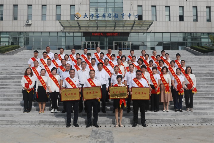 学校领导与受表彰集体代表、教工合影留念