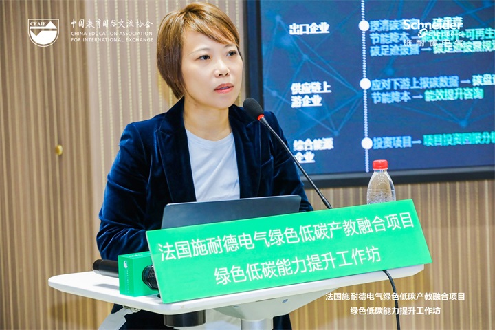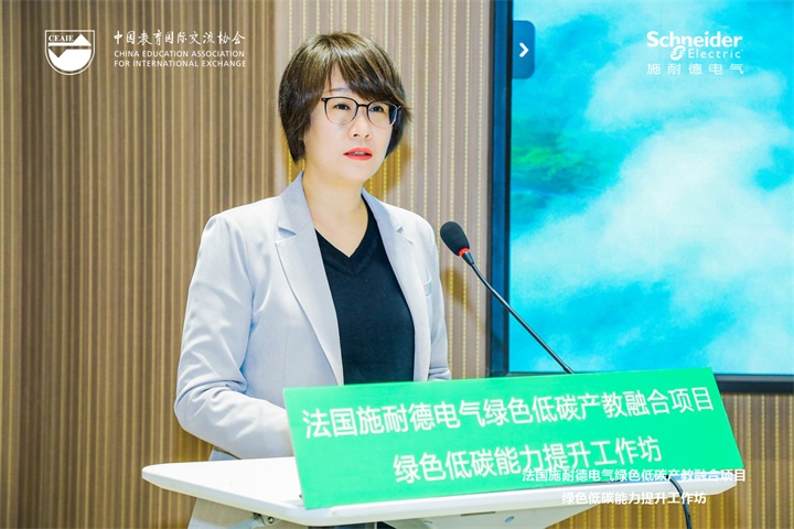 何培介绍了施耐德绿色低碳产教融合项目推进情况,她表示,希望通过打造“施耐德电气绿色绿色低碳技术应用中心”实现打造数字化产业人才培养高地,为院校打造高水平“双师队伍”,从而更好地服务区域行业企业技术开发与升级。