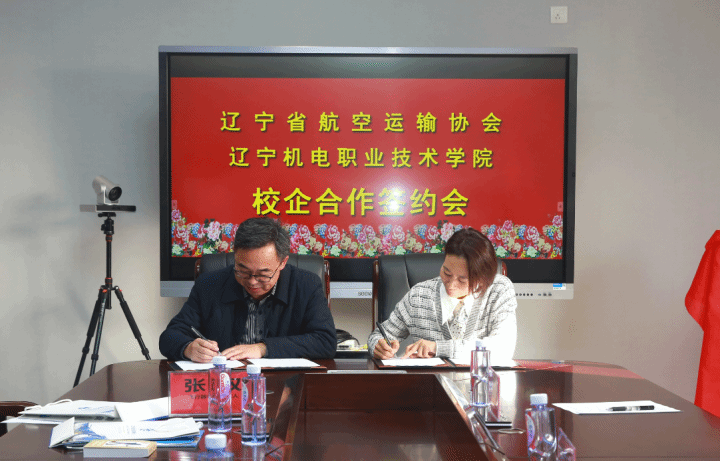 副院长宁秋平与辽宁省航空运输协会副会长杨艳莉代表合作双方签署协议