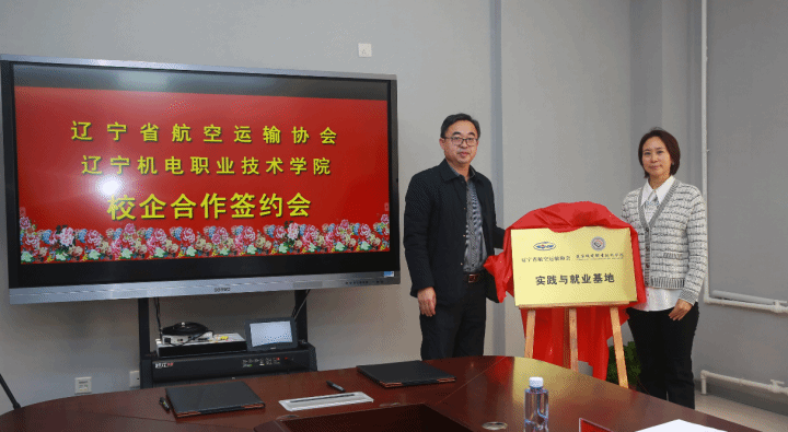 副院长宁秋平与辽宁省航空运输协会副会长杨艳莉代表合作双方揭牌