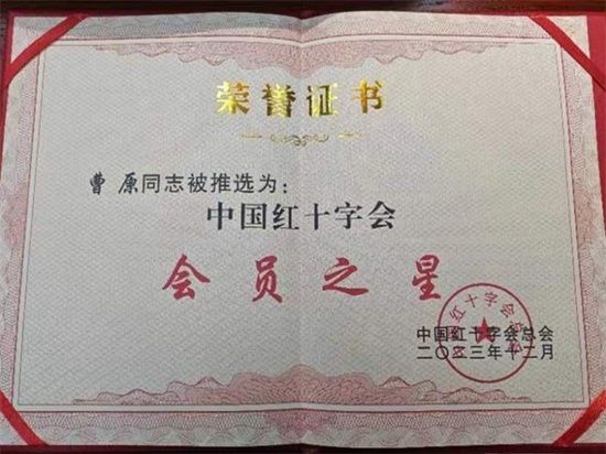 中国红十字会“会员之星”推选活动旨在进一步推进红十字会组织体系建设,充分发挥会员在红十字事业发展中的主体作用,激发会员参与和支持红十字事业和热情,增强会员的归属感、荣誉感,提升会员工作水平。经中国红十字会总会考察,我省共有15名同志被推选为2023年度中国红十字会会员之星,我校教师曹原位列其中。