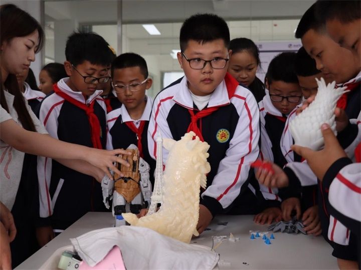 在3D打印实训室,我校老师带领学生体验了3D打印的全过程,并详解讲解了3D打印的基本原理。在飞行机展示区,学生们在我校学生的带领和指导下,体验了操控无人机飞行的科技魅力。通过现场体验,学生们感受到了工匠对工艺品质的严谨、执着,激发了他们对知识的好奇和对科技的热爱。