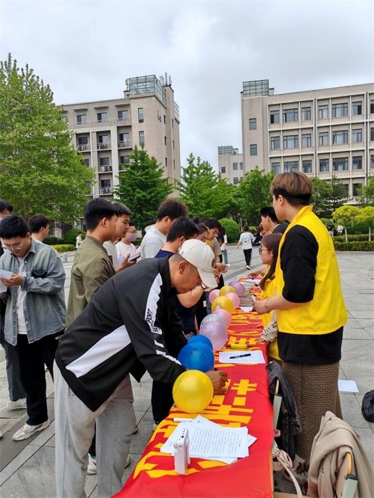 我校在仪表园和黄海校区分别开展以“五育并举 向心而行”为主题的关注心理健康签名和心理测量活动,学生通过扫描二维码进行心理测量,并可查看测量结果,增进对自己的了解和认识。不少学生和教师驻足签名和测量活动现场,并在红色条幅上郑重签下自己的姓名,留下对心理健康的更多期许。