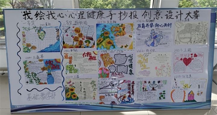 为提升学生心理素养,发掘学生潜力,面向全校开展了以“五育并举 向心而行”为主题的“我绘我心”心理健康手抄报创意设计大赛,学生作品主题鲜明、思想积极、内容丰富、形式多样,大赛发掘学生潜力,促使学生思考,学会以乐观的心态面对人生。