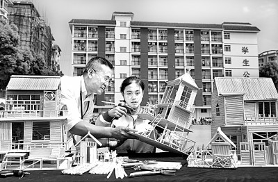 贵州省黔西市中等职业学校学生在老师的指导下进行手工制作现场实训。史开心摄/光明图片