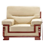 1 | 单人皮沙发 | ★1.尺寸:长1000*宽900*高850;★2.基材:采用水曲柳实木,环保无毒害,甲醛含量达到产品标准,经过防虫、防腐等处理; ★3.油漆:采用符合国家检测标准的环保油漆; ★4.座面:优质环保皮,透气性强,厚度适中,手感良好; ★5.座面海绵:环保型高密度海绵,回弹性好、不变形,根据人体工学原理设计,坐感舒服,柔软且富有韧性,暖白色。 |