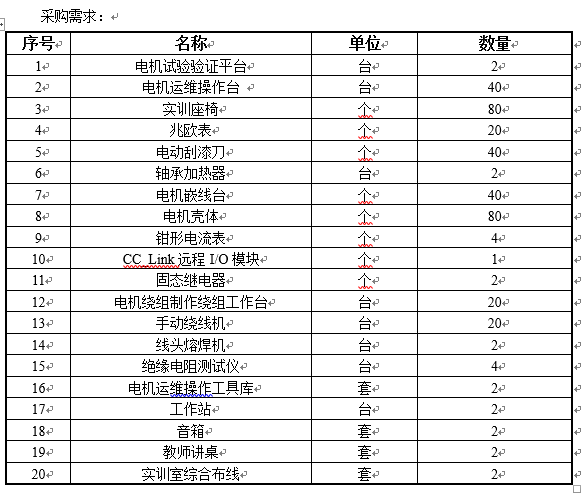 项目名称:电机拆装维修实训室建设项目